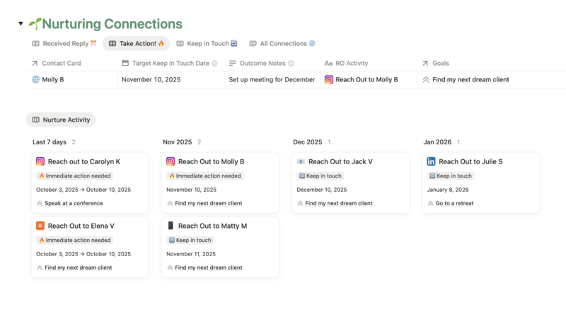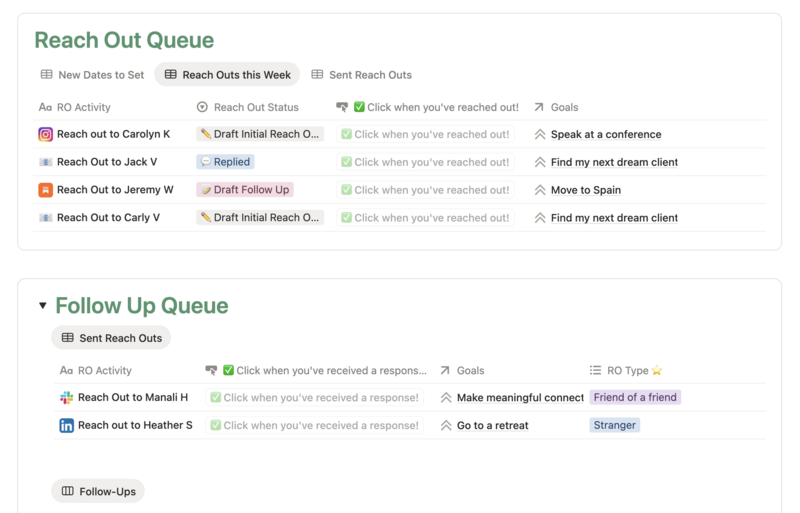 CRM who? This system makes remembering to ACTUALLY reach out and follow up easy and fun. You cannot grow what you cannot track. Period! The tracker is what moves you forward, keeps you going, and provides compounding effects with every reach out.